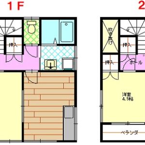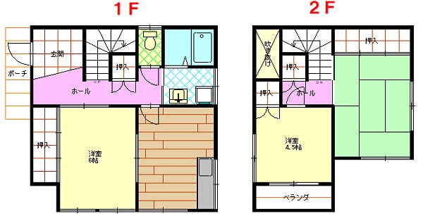 | 間取り内訳 | 1F:DK6帖、和室6帖 2F:洋室4.5帖、和室6帖 |
